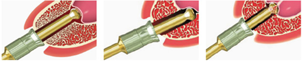 Высокая скорость сверления с постоянным орошением позволяет быстро и безопасно сформировать ложе имплантата, предупреждая повреждение слизистой оболочки.